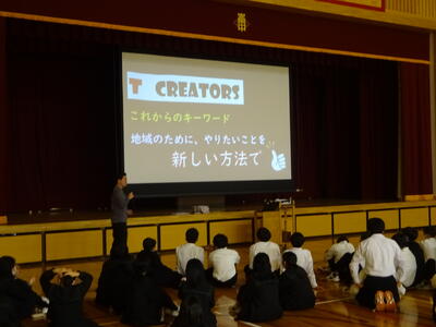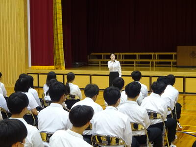 体育館で3年生全体に講話も行ってくれました。