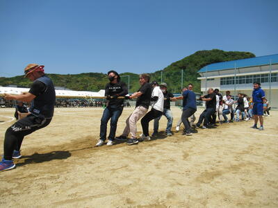 各色別に綱引きチームが出場し、保護者チームと試合を行いました。